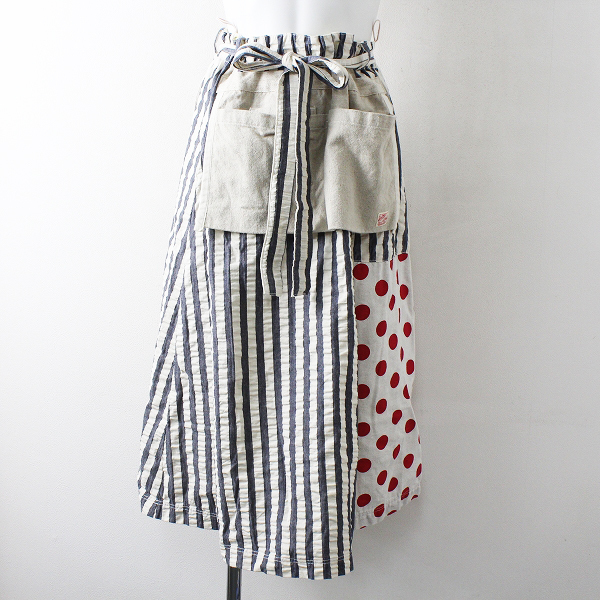 :快晴堂 カイセイドウ ストライプ ドット 切替 エプロン スカート