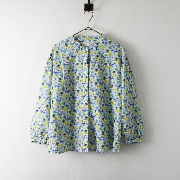 :NIMES ニーム LIBERTY リバティプリント長袖バンドカラーブラウス