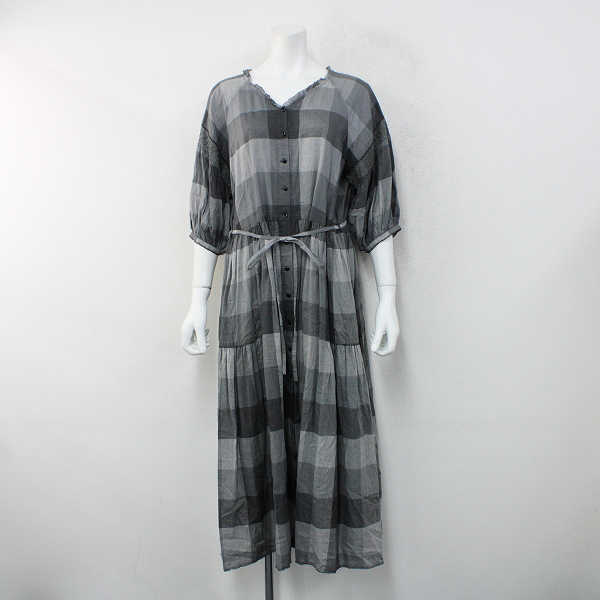 :2018年 PINK HOUSE ピンクハウス ピコフリル ブロックチェック コットンリネン シャーリングワンピース