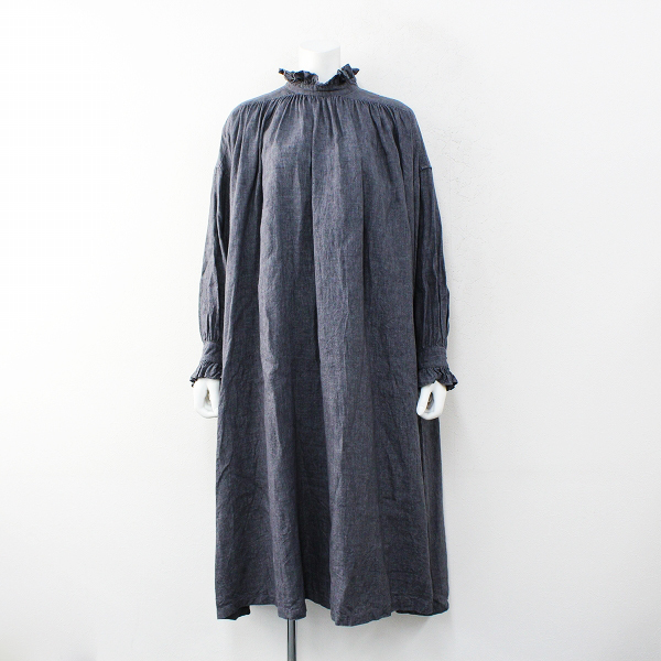 :Joie De Vivre ジョワドゥヴィーヴル ベリースタイル リネンフリルカラーワイドシルエットプルオーバーワンピース