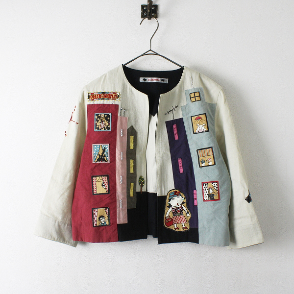 :OLLEBOREBLA ALBEROBELLO アルベロベロ ワッペン ビーズ装飾 ノーカラージャケット