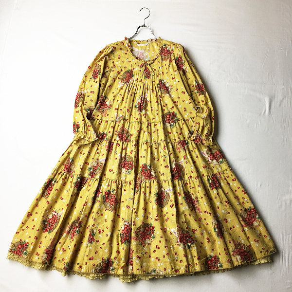 :2020春 PINK HOUSE ピンクハウス ロイヤルクィーンベリー柄 ピコフリル 綿ローン ティアードワンピース