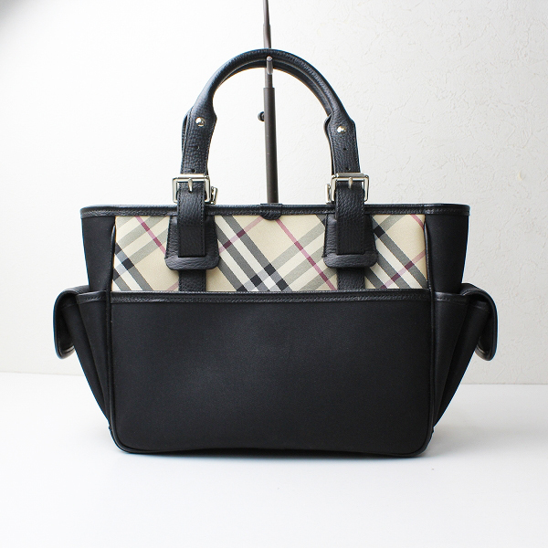 :BURBERRY バーバリー レザー × ツイル ノバチェック ハンドバッグ