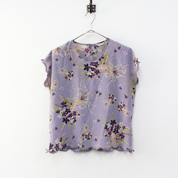 :KANEKO ISAO カネコイサオ レース使い すみれ柄プリント ブラウス