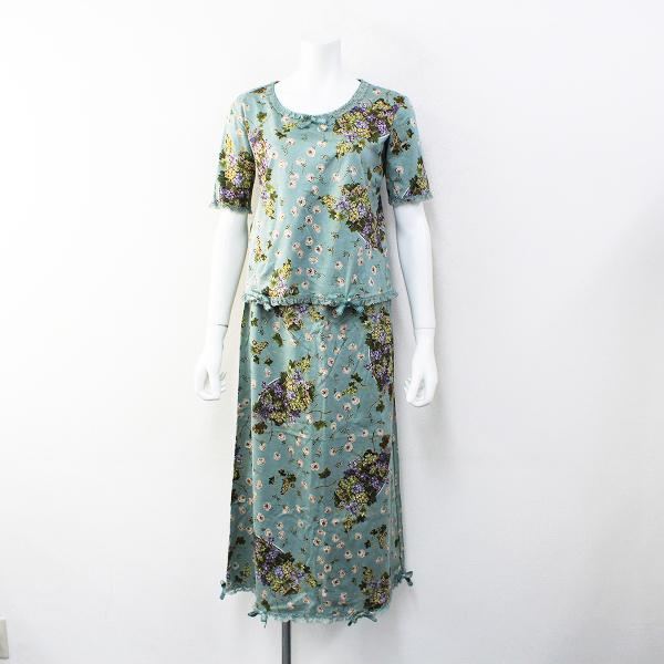 :KANEKO ISAO カネコイサオ レースフリル ぶどうとバラの柄 カットソー スカート セットアップ