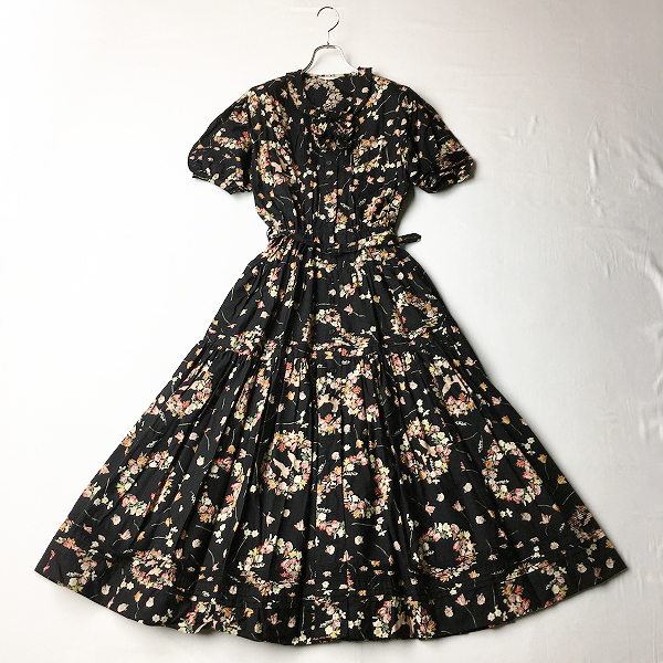 :PINK HOUSE ピンクハウス シロツメクサプリント 丸襟ピンタックピコフリル装飾 4段ティアードワンピース