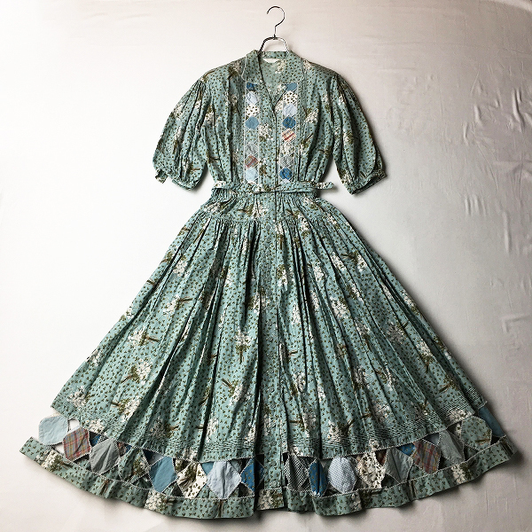 :PINK HOUSE ピンクハウス シロツメクサ プリント パッチワーク ギャザーワンピース