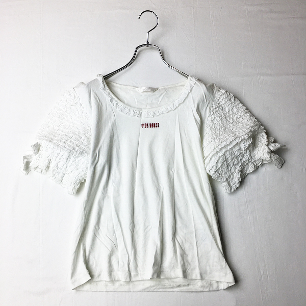 :2019年 PINK HOUSE ピンクハウス ピコフリルスリーブ切替 ロゴ刺繍 カットソー