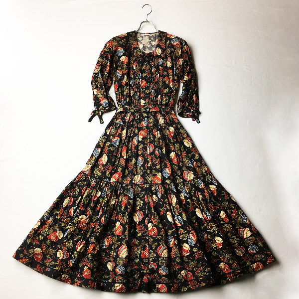 :PINK HOUSE ピンクハウス ジャム瓶プリント ピンタック装飾マエアキワイドシャツワンピース