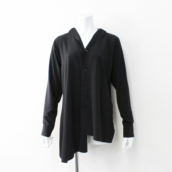 :2019FW Yohji Yamamoto(Y’s) ワイズ ヨウジ ヤマモト YJ-B02-500 ノーカラーアシンメトリー 長袖シャツ