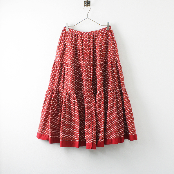 :PINK HOUSE ピンクハウス ドットプリント フロントボタン ティアード ギャザー スカート