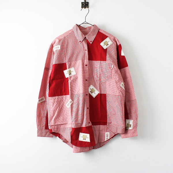 :PINK HOUSE ピンクハウス くまワッペン パッチワーク チェック ボタンダウンシャツ