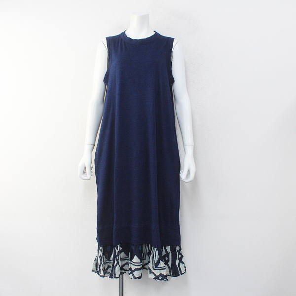 :45R フォーティファイブアール 裾フレア切替 インディゴ染め ノースリーブワンピース