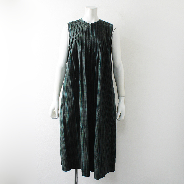 :2019年 Le pivot ルピボット コットン タータンチェック ピンタック入 ノーカラーノースリーブシャツワンピース