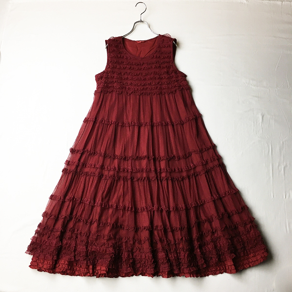 :2019年 PINK HOUSE ピンクハウス ドットチュール ピコフリルティアードフレアノースリーブワンピース
