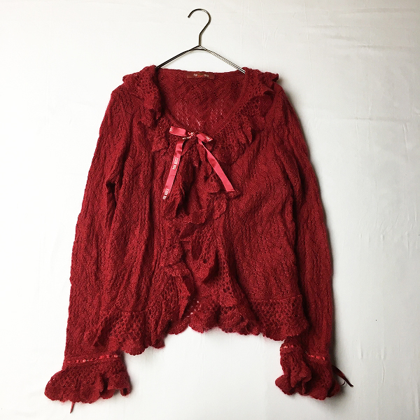 :2016年 秋 カタログ掲載品 PINK HOUSE ピンクハウス Berry’s Wreath モヘヤ混透かし編みフリルカーディガン