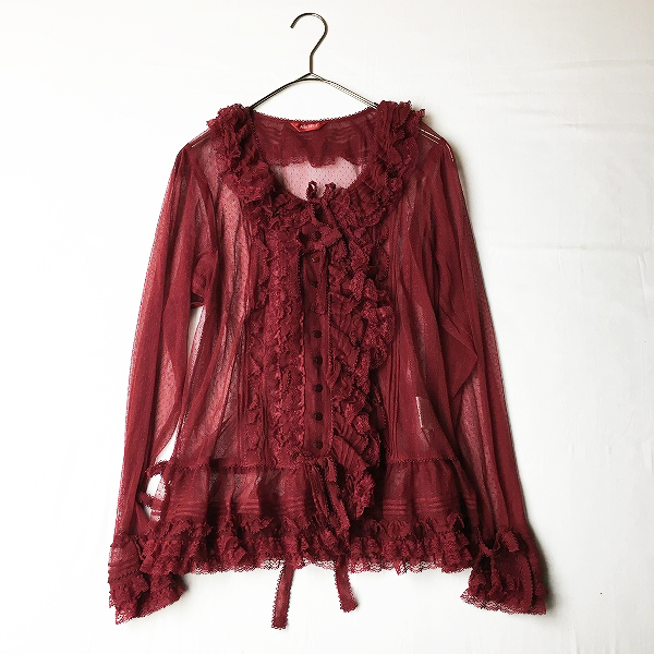 :PINK HOUSE ピンクハウス 2019年 ドットチュールレースフリル長袖リボンブラウス