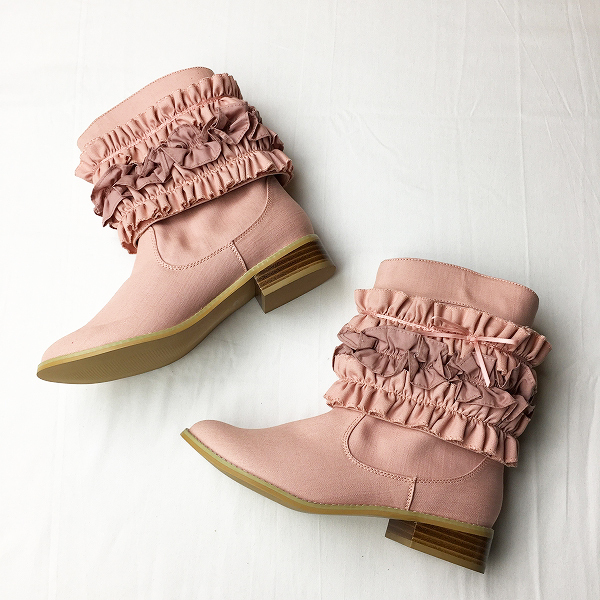 :PINK HOUSE ピンクハウス ギャザーティアードフリルリボン ショートブーツ