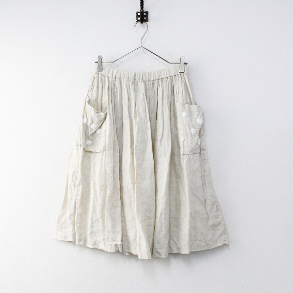 :Jupe BY JACKIE COMME des GARCONS コムコム コムデギャルソン リネン フラワー刺繍 スカート