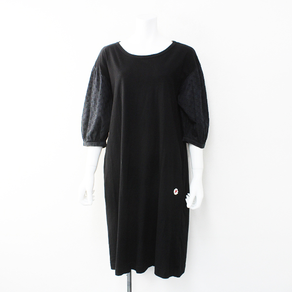 :2017SS PINK HOUSE ピンクハウス Pワッペン ドットジャガードスリーブ コットン ワンピース