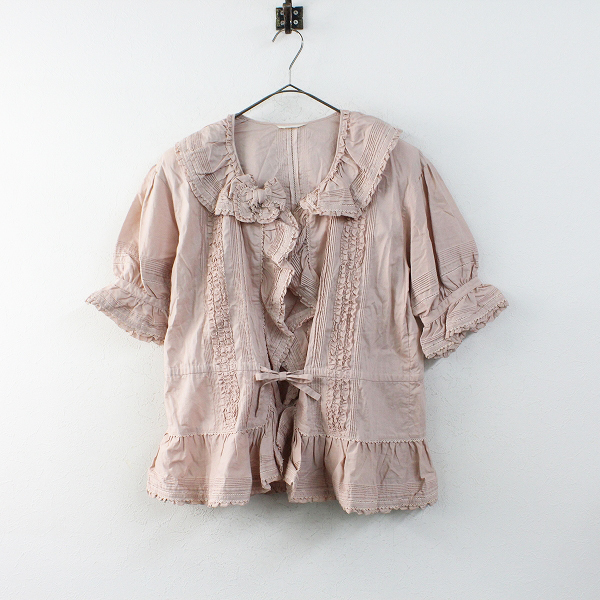 :PINK HOUSE ピンクハウス ピコフリル衿 ピンタック 綿ローン パフスリーブブラウス