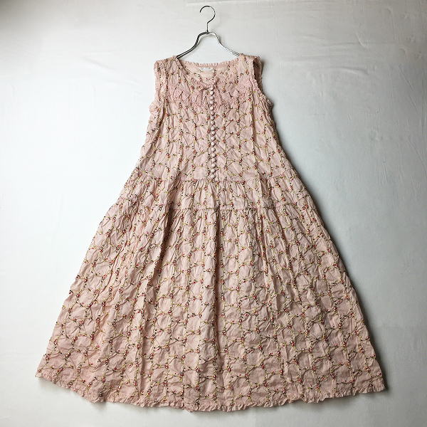 :2017夏コレクション PINK HOUSE ピンクハウス つた薔薇刺繍 レース使いノースリーブワンピース