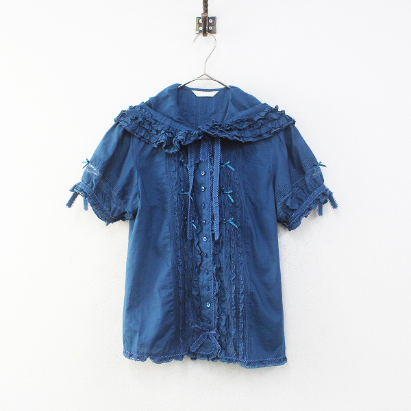 :PINK HOUSE ピンクハウス ピコフリル 綿ローン リボン フード ピンタック ブラウス