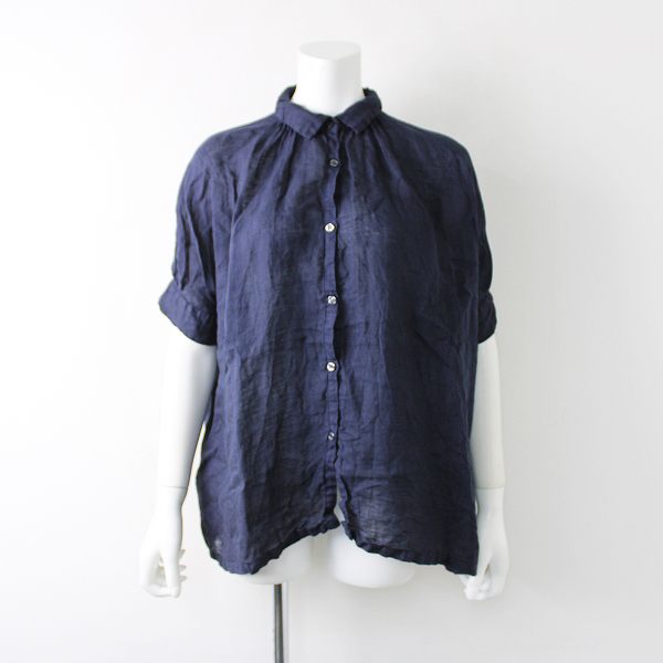 :Honnete オネット リネン ギャザー ワイドブラウス