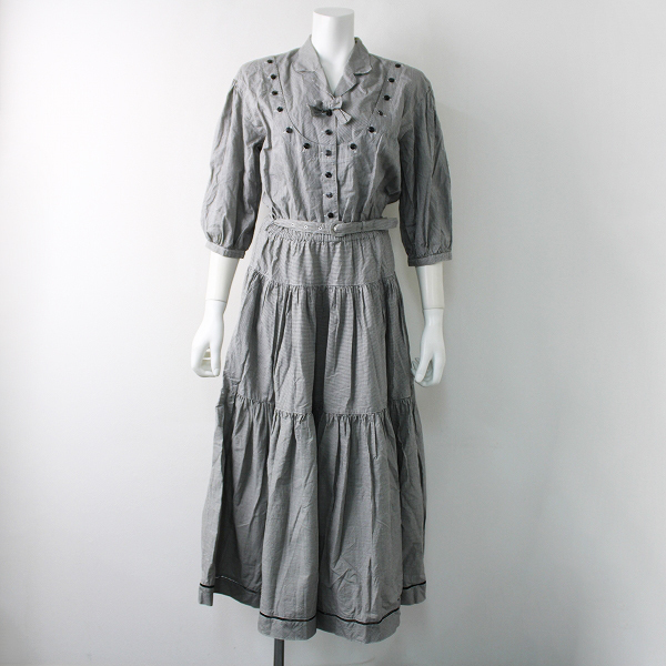 :KANEKO ISAO カネコイサオ コットン ギンガムチェック パフスリーブ シャツワンピース