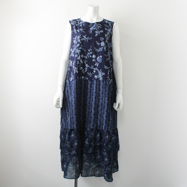 :45R フォーティーファイブアール インディゴフラワーパッチワークワンピース