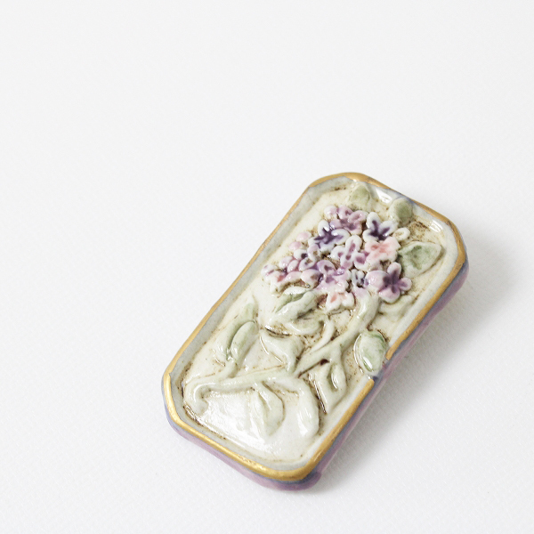 :2020 小菅幸子 コスゲサチコ 陶器 スクエア ライラックブローチ