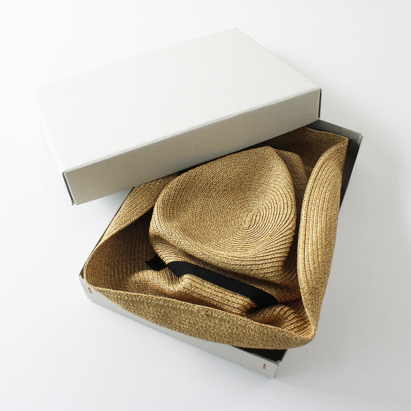 :mature ha. マチュアーハ BOXED HAT 11cm brim cotton ribbon リボン ボックス ハット