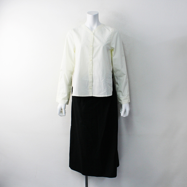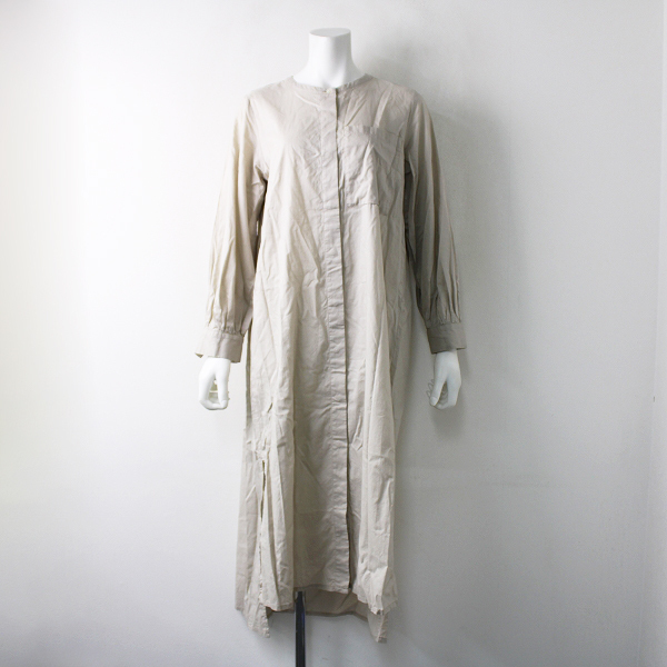 :MIDIUMISOLID ミディウミソリッド コットン ノーカラー ギャザー シャツ ワンピース