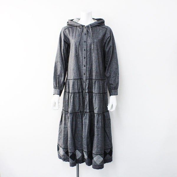 :PINK HOUSE ピンクハウス 裾レース アップリケ ピコ加工 フード ティアード ワンピース