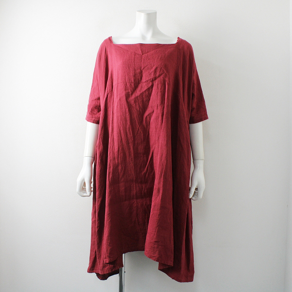 :House of Lotus ハウスオブロータス 染色加工 リネン スクエアネック ヘムライン ワイドギャザーワンピース