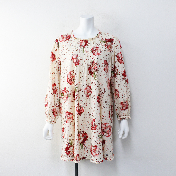 :2018AW PINK HOUSE ピンクハウス ピコフリル ポンポンマムプリントチュニックブラウス