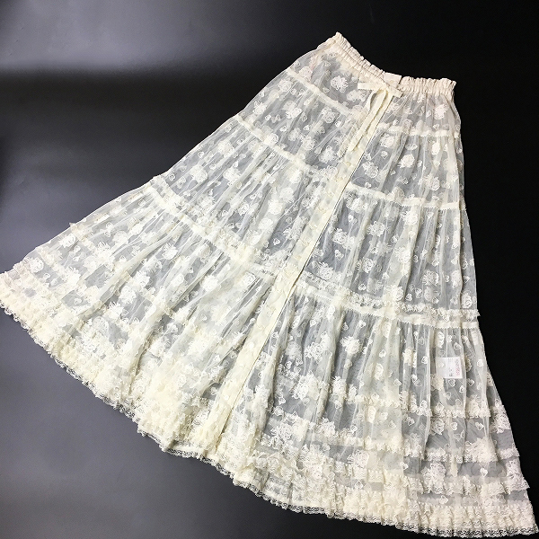 :2016年春カタログ掲載 PINK HOUSE ピンクハウス 前ボタン ローズ刺繍チュールスカート