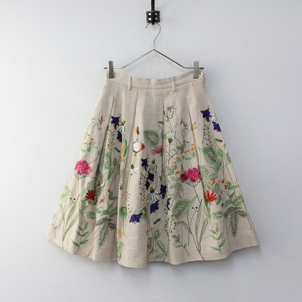 :45R フォーティーファイブアール ギマツイード 花刺繍 プリーツスカート