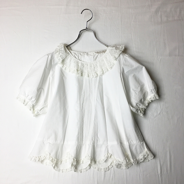 :2019年 PINK HOUSE ピンクハウス 綿ローン フラワーレース襟バックボタンパフスリーブブラウス