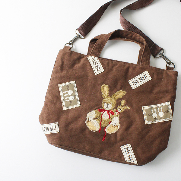 :PINK HOUSE ピンクハウス うさぎ刺繍 2way トートバッグ