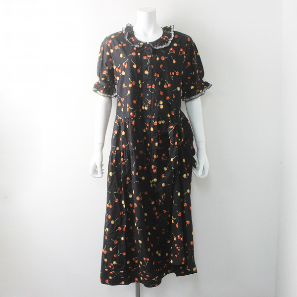 :WONDERFUL WORLD KANEKO ISAO ワンダフルワールド カネコイサオ チェリー プリント ピンタック 前開き ワンピース