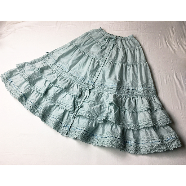 :2019年 PINK HOUSE ピンクハウス 綿ローン ピコフリルティアード前ボタンリボン付きフレアスカート