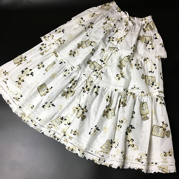 :2017年 PINK HOUSE ピンクハウス 綿ローン パールスノープリント段フリルフレアスカート