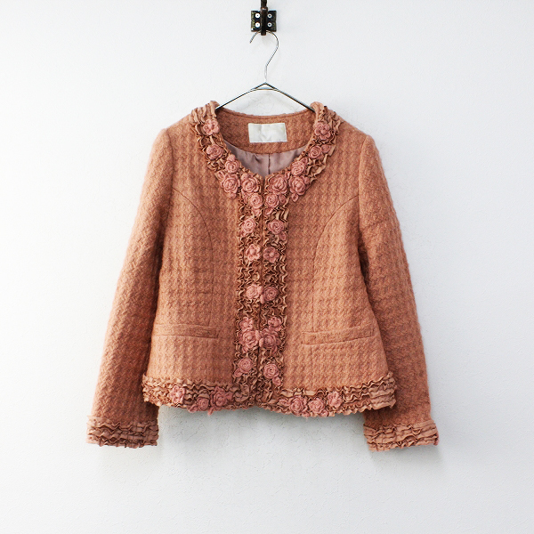 :PINK HOUSE ピンクハウス フラワーモチーフ ピコフリル ウール ノーカラージャケット