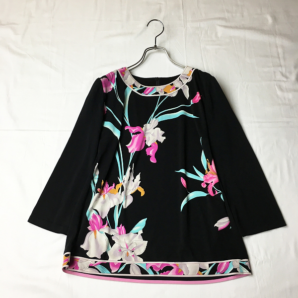 :LEONARD レオナール 前後切替 フラワープリント ジャージー素材 プルオーバートップス