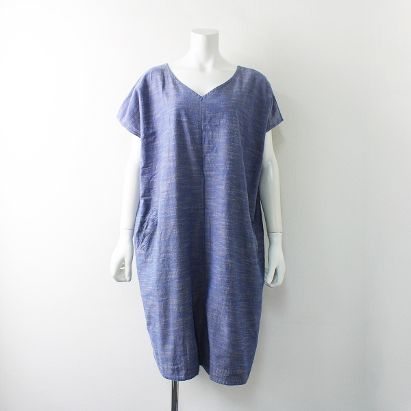 :ヤンマ産業 会津木綿 Vネック ボックス ワンピース