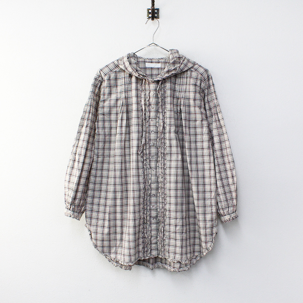 :PINK HOUSE ピンクハウス ピコフリル ピンタック フード付 チェック チュニック ブラウス