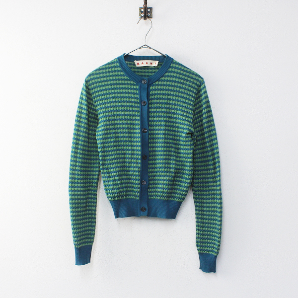 :MARNI マルニ コットン 丸ボーダー柄編み クルーネック カーディガン