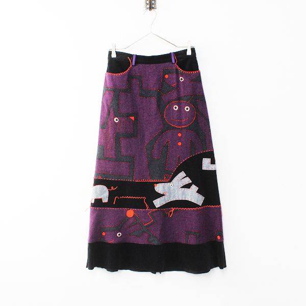 :OLLEBOREBLA アルベロベロ ウール混 アニマル ステッチ ロング スカート
