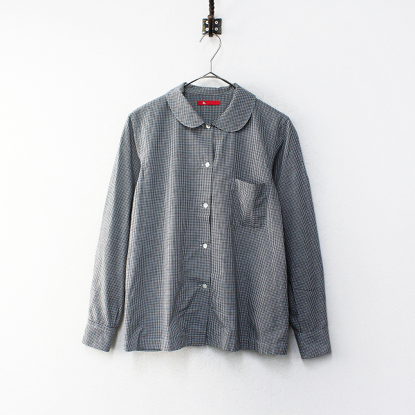 :a. エードット ブロードギンガムチェック 丸襟 シャツ